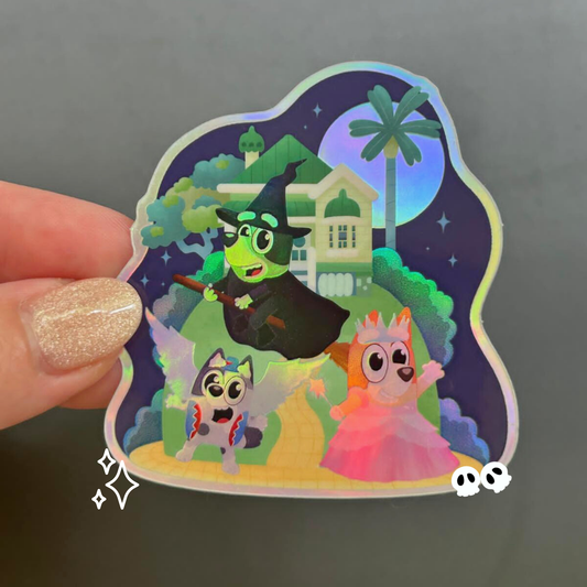Bluey, Bingo & Muffin Wicked Halloween Holographic Stickers