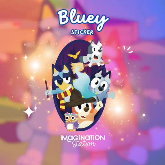 Bluey Harry Potter Sticker, Holographic Waterproof Vinyl, Wizard Magic Teacher Appreciation Gift, Cute Bluey School Laptop Water Bottle Sticker