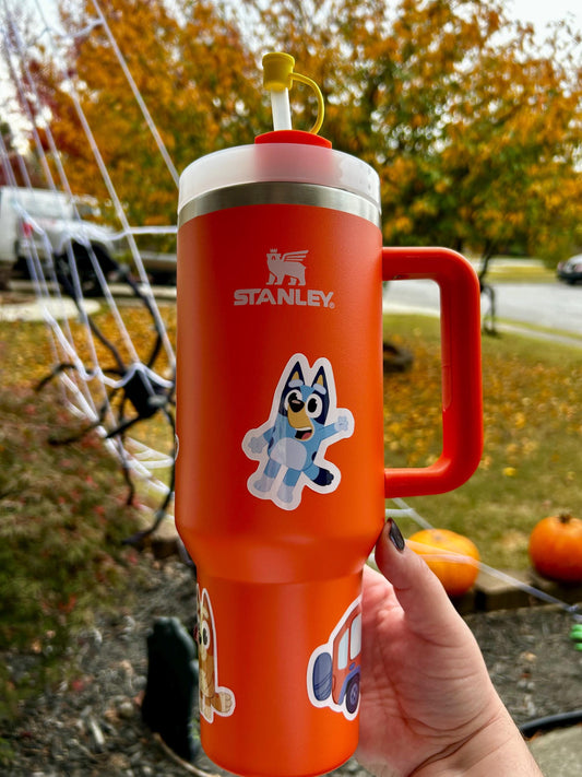 Bluey Tumbler Combo 40oz with Straw & Spring Sticker Set | Waterproof Bluey Stickers & Bonus Gift