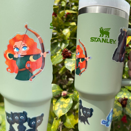 Brave Merida Tumbler Sticker Set for 40oz Cup Decor Waterproof Vinyl Archer Princess Decal Gift Bundle with Straw Disney for