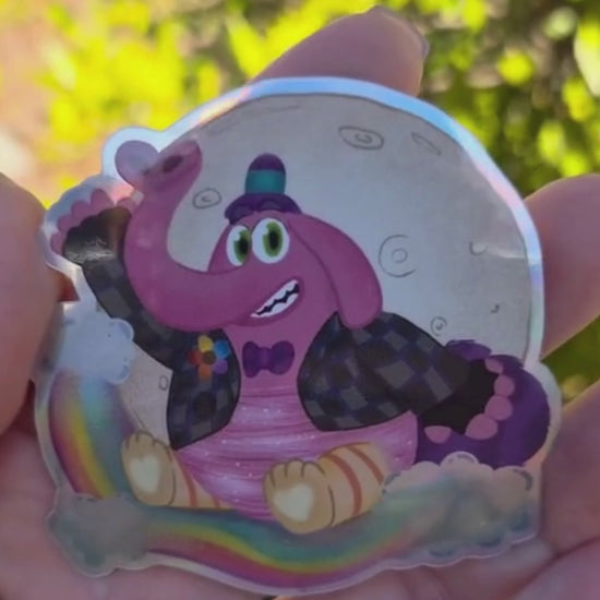 Bring the magic of Riley's imaginary friend to life with this premium BingBong sticker! This beloved Inside Out character shines with a stunning holographic glossy finish that catches the light beautifully from every angle.
