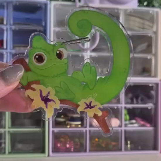 Bring Pascal's playful charm with you wherever you go with this adorable acrylic carabiner featuring Tangled's lovable sidekick. Crafted in glossy clear acrylic, this charm captures Pascal's vibrant personality and curious expression in stunning detail that catches the light beautifully.